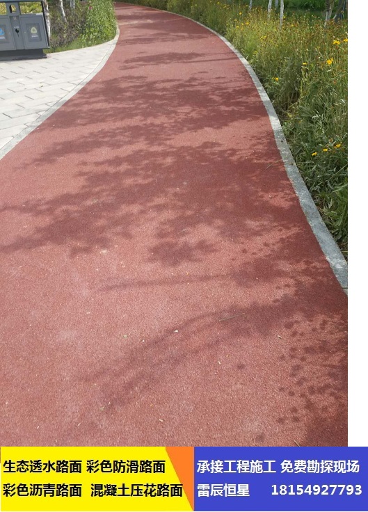 施工彩色防滑路面按甲方要求施工一般是5-8CM厚度*佳,新疆雷辰恒星*施工彩色防滑路面!希望大家多了解咨詢!疆內常年承接道路防滑路面、彩色道路透水施工、坡道防滑顆粒施工、海綿城市道路施工等等。