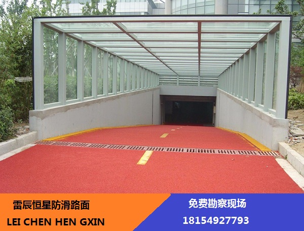 彩色防滑路面通過(guò)道路顏色的不同,提示駕駛者在規(guī)定的路面上行駛,從而避免了不同車(chē)輛的混行;提示駕駛?cè)藛T前方的危險(xiǎn)路段,并通過(guò)提供高摩擦力的面層來(lái)實(shí)現(xiàn)很好防滑效果;駕駛員駛?cè)肷鲜雎范慰梢蕴崆敖档退俣龋⒃诰o急情況下,縮短剎車(chē)距離,避免惡性交通事故。彩色路面防滑系統(tǒng)是一種樹(shù)脂基路面防滑系統(tǒng),包括特殊配方的樹(shù)脂基黏合劑和各種不同規(guī)格的骨料,以準(zhǔn)確的數(shù)量涂敷于各種路面。此種路面不僅對(duì)景觀美化和道路安全方面有著明顯的改進(jìn),同時(shí)因其面層耐磨耗,可以對(duì)普通路面起到延長(zhǎng)壽命的作用。彩色防滑路面的引入,對(duì)改善我國(guó)交通惡化的現(xiàn)狀,有著積極深遠(yuǎn)的意義。