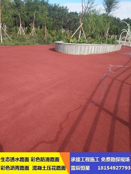 冷涂型彩色防滑路面材料的類型有丙烯酸型、環氧型,聚氨酯型等,其為液態。施工時,無需大型設備,只需將基料與固化劑按比例混合后,用滾涂的方式涂鋪于路面,并添加防滑沙層,經過化學交聯反應,快速固化成堅韌的漆膜,形成彩色防滑路面。 施工簡單,快速簡便,目前已經成為市場主要的選擇對象。其中聚氨酯型由于其綜合性能更有優勢,所以在國內目前的市場占有率*高。